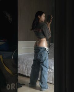น้องในเวอร์ชั่นงานถ่ายแบบชุดชั้นใน นั่งกึ่งนอนที่ปลายเตียง ให้แสงสาดเข้ามาเห็นร่างกายเพียงแค่บางส่วนทั้งแบบชัดมาก แล้วก็สลัวมองไม่ชัด ประมาณว่าเป็นมุมที่เราเปิดประตูห้องเข้ามา เห็นน้องกำลังนั่งรอเราท่านี่อยู่ มันได้ทั้งความเซ็กซี่ ผสมกับศิลปะได้อย่างพอดีทีเดียว ทีนี้มาต่องานถ่ายแบบดีกว่าเราชอบ